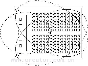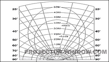 CREATOR輻射面板的輻射區(qū)域呈錐體狀(±22.5°),即隨著距離的增加,發(fā)射光區(qū)域的直徑也相應(yīng)增大,直至超過某一極限,此時(shí)紅外光能量已不足以接收信噪比高于40dB的音頻信號(hào),具體參閱圖2。
