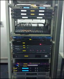 分量視頻信號(RGBHV):分量視頻信號是將視頻信號中的R(紅)、G(綠)、B(藍)三原色分離傳輸,再加同步信號(sync),可保證信號傳輸的保真度及穩定性,在專業廣播電視系統中被廣泛應用。分量視頻信號不但信號質量較高,而且傳輸距離可達200米以上。該會議室有多路輸入輸出信號,并包括不同格式的信號,會議室內的各類信號如錄像機的復合視頻及計算機的RGB信號,均經信號處理系統統一處理并分配給顯示設備,方便信號輸入輸出切換的操作管理,并可提高視頻圖像的質量。
