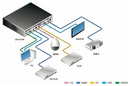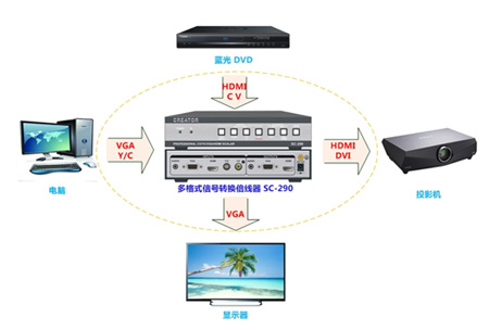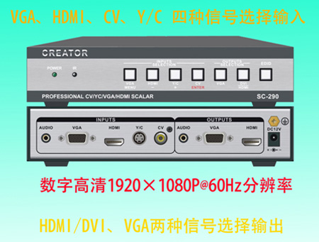 SC-290多格式信號轉換倍線器,是將VGA、HDMI、CV、Y/C