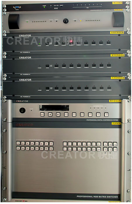 CREATOR快捷本次為華潤醫藥量身定制的智能會議系統操作簡便,功能強大,性能穩定,主要集成了CR-PGMIII中央控制主機、CR-RGB1616矩陣、CR-DIG5201全數字會議系統控制主機和嵌入式桌面話筒等產品,完美地控制攝像機、DVD、電視機、音頻設備、信號源等設備。