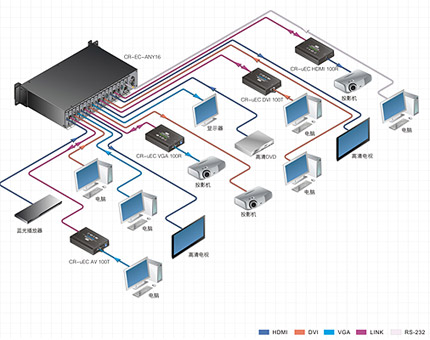 CR-EC-ANY16混合矩陣支持多種視頻信號輸入,您完全可以根據不同的場合連接各種電腦信號、音視頻設備,如DVD、PC、圖形工作站等。搭配CREATOR