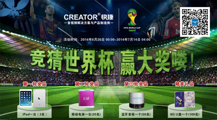 CREATOR快捷縱情世界杯,豪禮來(lái)助力!只要你猜中誰(shuí)能加冕為王,CREATOR快捷大禮立馬送到家!