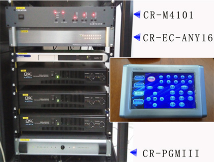 G7pip作為人機(jī)交互平臺(tái),將會(huì)議室內(nèi)的矩陣、電源控制器、大屏幕、窗簾、燈光、擴(kuò)音設(shè)備等進(jìn)行集中控制?刂浦鳈C(jī)CR-PGMIII與觸摸屏CR-Wireless