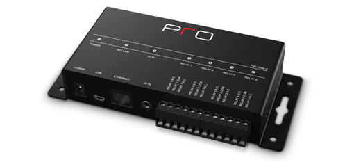 ProLink.r處理器擁有四個可路由紅外輸出端口,每個端口功率均可調節。此外還帶有一路電壓感應輸入、一個以太網端口,一個編程用USB接口。Rj-45以太網端口主要用于連接10/100