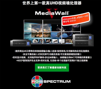 對(duì)于MediaWall V處理器,在4K UHD顯示設(shè)備的視頻墻上它可以顯示ultra高分辨4K視頻和圖形與HD信號(hào)。一個(gè)4K