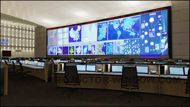 一樓是一個超過900平米的多功能監(jiān)控大廳, 同時配以85塊巴可80”DLP