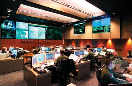 通過指揮和控制中心,政府官員們能夠監視和操作通信、監控和武器