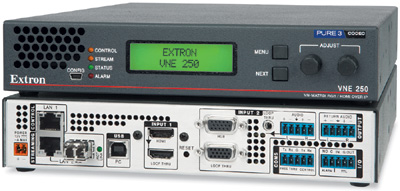 Extron電子很高興地推出了VN-Matrix 250編碼器和解碼器,它通過標準IP網絡提供符合 HDCP標準的高分辨率HDMI、DVI或RGB視頻的實時傳輸,可用于實時流傳輸、記錄和回放應用。VN-Matrix