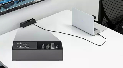 這是一款支持半永久性安裝的接線盒,無需對桌面進行開孔就可直接安裝在桌面邊緣。其配備的鎖定組件無需工具或額外的部件即可將接線盒固定到桌面上。AVEdge100