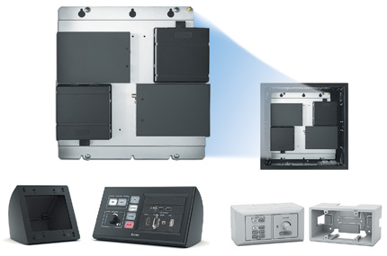 表面安裝盒設計用于將美式單元尺寸的產品安裝在桌面、講臺和其他演示家具上,可提供一單元到五單元的規格。
