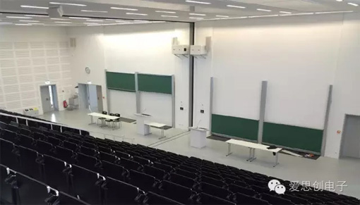 雙絞線電纜連接至地插盒。位于觀眾席一側的講臺則提供了可視化工具或實物展臺,以及具有注解功能的交互式智能觸摸屏。XTP