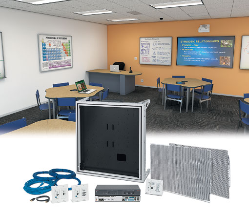 數字系統是易于使用的完整視音頻切換和控制系統,可無縫集成最常用的教室視頻信號。每個系統包括所有必需的視音頻切換、音頻放大、系統控制、信號源連接、揚聲器、安裝硬件和電纜,從而提供一個完整的教室視音頻解決方案。
