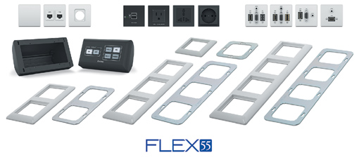 Extron 電子很高興地推出了 Flex55 系列全球連接安裝解決方案。 Flex55