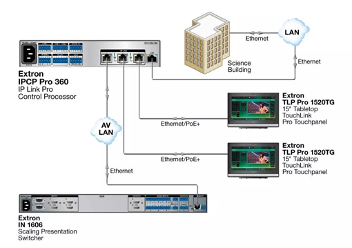 Extron 電子非常高興地推出了 IPCP Pro 360,配備 3 個(gè)專(zhuān)用視音頻局域網(wǎng)端口和 1
