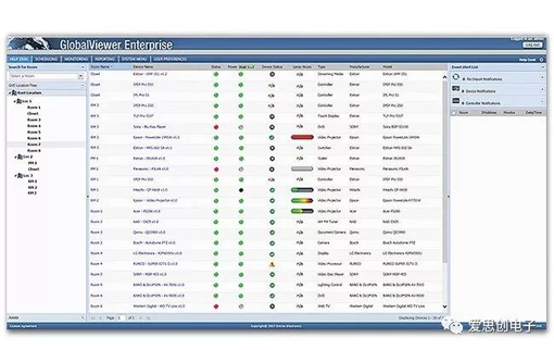 >> 擴展的房間控制視圖允許通過一個窗口察看整個企業的設備狀態