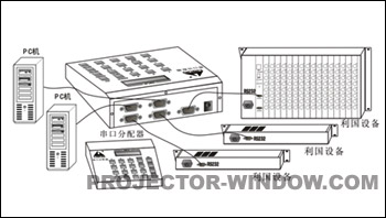 該設備支持三路RS-232串口輸入(接受控設備),兩路RS-232串口輸出(接控制用戶),三路輸入可分別連接三臺利國設備,兩路輸出可連接兩臺電腦(配有免費的控制軟件)。同時,此設備自帶有控制按鍵,也可通過本設備來控制后端的設備(既小型的中控設備)。