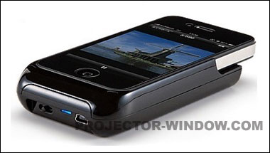 的這臺微型投影機可以支持iPhone4/4S,本身同時是個2,100mAh的行動電源,因此你的iPhone接上它的時候就可以充電(投影功能關閉時)。充飽電需要五個小時,滿電可以連續投影2.5小時。這臺微型投影機可以在墻面上投射出65