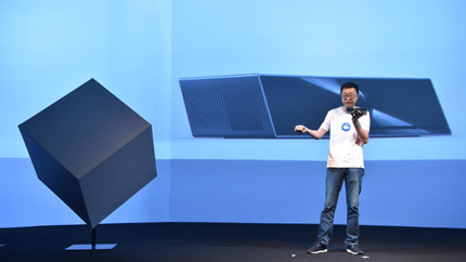 大有玩投”發(fā)布會現(xiàn)場首次采用微鯨未來媒體實驗室設(shè)計師原創(chuàng)的炫目光雕投影秀開場,設(shè)計靈感來源于微鯨魔方的ALL IN
