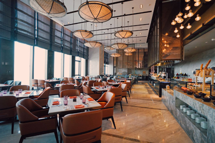 鄭州萬達(dá)文華酒店的宴會(huì)會(huì)議設(shè)施可謂全城之最,擁有2,500平方米會(huì)議設(shè)施,包括全城最大的1,400平方米無柱式大宴會(huì)廳,另有8間多功能廳。會(huì)議、宴會(huì)廳及多功能廳配有Jomard品牌的明星產(chǎn)品,電動(dòng)對(duì)媒體吊點(diǎn)、投影吊架升降器,升降自如,完美隱藏于水晶燈,又不失其功能性,Jomard品牌將宴會(huì)會(huì)議設(shè)施美觀、智能化做到了極致。酒店擁有全城最高的景觀空中大堂,位于48層,俯瞰鄭州市最繁華的城區(qū)天際線景致。
