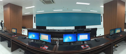 指揮大廳擴聲還選用了BIAMP Tesira系列的最新產品FORTé-TI數字音頻處理器作為系統(tǒng)核心。FORTé-TI的墻面控制面板可實現音量控制,模式調用等操作。通過編程和調試,將不同的使用環(huán)境和需求編輯成不同模式,即使是會議服務人員也可輕松通過調用模式實現會議控制,而無需專業(yè)技術人員現場值守。FORTé-TI還具有12路帶AEC回聲抑制功能的輸入接口,保證會場能夠接入足夠多數量的話筒,并保證視頻會議時可有效抑制回聲的產生。