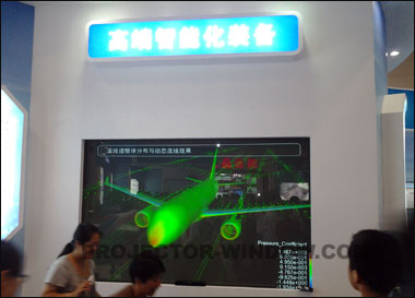 觀眾在觀看某機構在大型民航客機設計中可視化系統(tǒng)的應用,此機構碩果累累。全部軟硬件產品與技術由廣州艾恩光電提供。