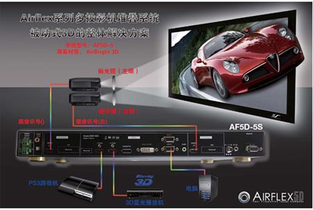 3D圖像,特別適合于影院級的3D高清家庭影院、商業或教育等市場。Airflex5D具有雙HDMI輸入,通過左右雙通首HDMI同時輸出高清畫質;Airflex5D內置9個可旋轉、彎曲的節點和4個角的幾何曲面自定義校正功能,圖像精確定位,可投影到不同形狀和大小的屏幕上,創建逼真的圖像效果。