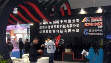 作為本次展覽地重頭戲二號特展館更是燈壁輝煌。在這個展館中由成都菲斯特科技有限公司、廣州聲功電子和深圳市捷報互動科技聯(lián)合展出的音響、KTV專用電視、游戲終端點歌系統(tǒng)及演藝行業(yè)大屏幕顯示格外耀眼。同過三家公司的強(qiáng)強(qiáng)聯(lián)合提出一站式服務(wù)的全新理念,在行業(yè)內(nèi)引起相當(dāng)大的反響。