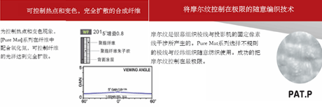 液晶投影機像素線與投影幕材料結構之間的相互干擾,會使一般投影幕圖像出現波紋,這就是摩爾紋(即干涉條紋)。為了防止這個現象發生,OS研究了很多的紡織布料,最終選用了經緯綾線不明顯且紡織得特緊密的特殊結構品種應用于WF(OS專利幕布)上,從而成功地將摩爾紋(干涉條紋)抑制到最小極限。