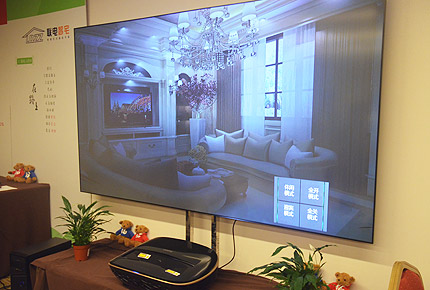 其次,屏幕采用超薄邊框設計,應用時的感覺非常像是大尺寸平板電視,優雅精致,在客廳中作為主視覺展現,符合各種風格的家居環境。
