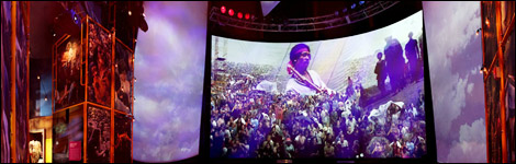 本屆典禮Stewart提供了6塊屏幕,其中最主要的舞臺中心屏幕被用來播放獲獎提名和影片內容,AT3M的25英尺2英寸x43英尺1英寸無縫屏幕, 是迄今為止頒獎典禮用過的最大屏幕 >>