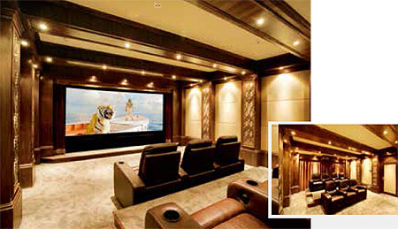 Deco風格的室內設計配合專業的影院施工工藝,使得審片室級別的觀影空間流動著紐約大都會的生活與藝術氣息。聲學技術與裝飾藝術的完美結合是房間的最大亮點,包括影音設備、聲學處理均巧妙地融入了影院設計,