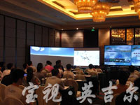 [投影之窗消息]  日前,南京英吉爾 與某國際知名企業攜手在成都香格里拉大酒店展示了一套無縫拼接投影顯示系統。南京英吉爾為這次展示會提供了一塊120英寸×3的環形金屬硬幕。成為這次展會的一個亮點。