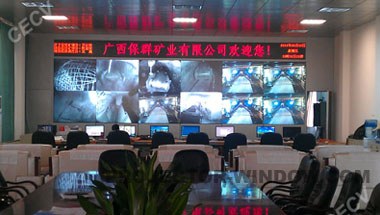 60"DLP數字拼接墻升級項目正式投入使用。煤礦生產環境的特殊性決定了煤礦的信息技術應用要把對礦井環境安全的監測和監控作為重點來抓。廣西保群礦業生產調度中心為便于管理,確保礦區安全,實現高效的運行生產,礦領導決定在剛剛建成的機關辦公大樓會議室中增添一套由中電視訊CECV公司生產的DLP大屏幕顯示系統。