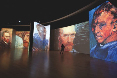 “梵高活著”是由澳大利亞的格蘭德展覽館構(gòu)思制作的,本次展覽通過大型投影屏幕讓參觀者領(lǐng)略到了梵高的高超創(chuàng)作風(fēng)采,同時,也作為獨特迷人的多媒體展覽秀的一部分。梵高的畫作與其1880年至1890年間靈感發(fā)祥地的全動態(tài)視頻和照片相互穿插播放,共有3000多個圖像。