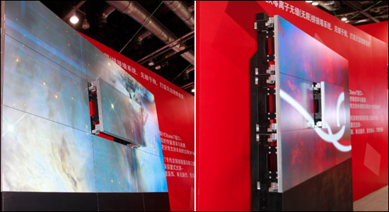 平板區—創新展示 DET專利發明拼接顯示屏三維調節器—創新前置式支架,前置裝卸,單元操作、安全省心、方便快捷。可運用于各種拼接顯示屏。德浩在平板拼接領域一直引領著行業的發展和變化,此次創新,以自身的發展,帶動了行業的進步。 平板區—液晶拼接 平板區,德浩極具創新的展示方式,給大家帶來不一樣的震撼感覺,LG47、55寸的超窄邊液晶拼接,以樹形的方式、按大小和層次的擺設,給商業應用和展覽展示帶來新的炫酷方式方法,突顯的德浩核心價值,聚德浩之所能,“持續為您創造顯示的價值”。 在展位中庭,LG55寸3D液晶拼接,3D效果逼真震撼,被動式3D眼鏡非常輕,商業顯示市場的運用非常廣泛。