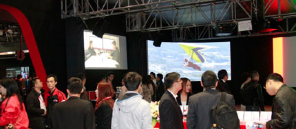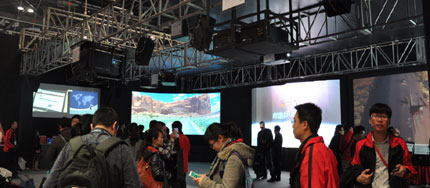 平板區—LED拼接屏 面對市場不斷增加的需求,DET首次推出高亮度,超精細的LED拼接屏。有1.9P和2.5P兩種點間距產品可供選擇;顯示器輕盈、時尚、科技、極具現代感;模塊化設計、單元精細,具有重量輕、精度高、散熱快。 平板區—軟件運用 為了更好的運用硬件,為客戶的項目增值,德浩ICT的展區賓朋滿堂,咨詢學習的人員絡繹不絕,而德浩與ICT剛剛合作成功的AUDI BEIJING CITY項目,更是博得喝彩一片,是AV試聽行業軟件與硬件結合的典范。有120寸2*2的DET等離子拼接觸摸屏,以及2*3的ORION42寸等離子拼接屏以及2*2的LG55寸液晶拼接屏,應用方位極其廣泛,隨需應變。