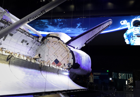 臺達高20英尺、寬110英尺的LED顯示屏為亞特蘭蒂斯號提供航行太空的壯麗背景 |