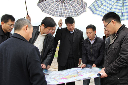 臺達集團中國區行政副總裁曾紀堅(中)等各方代表在簽約儀式前前往龍門鄉初級中學預定地考察