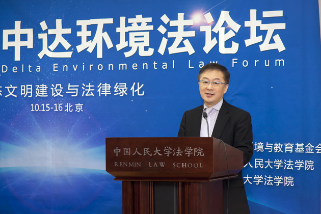 15日的論壇開幕式出席嘉賓包含中國法學會環境資源法學研究會會長、上海財經大學法學院教授蔡守秋、臺達環境與教育基金會董事、理律法律事務所執行長李念祖等法學領域學者專家。中國人民大學常務副校長王利明對“中達環境法論壇”的召開表示祝賀,并感謝臺達環境與教育基金會在推動環境法學科研究做出的貢獻。他表示,今年中央提出了五位一體的布局和五大發展理念,在這樣的背景下,探討生態環境建設和法律綠化命題顯得格外重要。環境保護關系到人民的福祉,關系到中國的未來,作為法律人要將推動環境立法,推動生態文明建設當成重要使命。