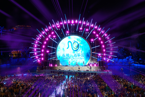 臺達攜手廣州長隆水上樂園打造了高達77.41平米的圓弧形戶外巨幕