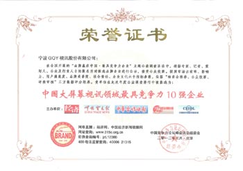 日前,由經濟雜志社等多家媒體聯合舉辦的以“誠信、責任、創新、發展”為主題的“2012中國競爭力論壇暨誠信與發展峰會”在人民大會堂隆重召開,寧波GQY視訊股份有限公司獲得“全國公眾滿意最具影響力典范品牌企業”“中國大屏幕視訊領域最具競爭力十強企業”,公司董事長郭啟寅先生被評為“和諧中國•最具影響力年度十大新聞人物”。