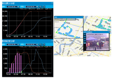 威創系統整合了運輸系統、車輛監控系統、GPS實況系統、運營分析系統等,形成以事件為中心的聯動處置能力。指揮人員通過大屏顯示的客流分析圖預測將要運送的客流和高峰時段,再結合線路虛擬圖上的首末站及中間站上下行的車輛判斷運力是否能支撐客流需求。大屏上動態公交車輛的分布和運行直觀顯示了車輛運行的順暢程度,特別是通過更為細致的地圖切片重點觀測體育館站和東站育王站的執行任務車輛。根據各場站的客運聚集程度,綜合客流、運力信息,指揮人員在整個清明運輸保障過程中,做到判斷準確,實時應對,既保障了客流的及時運送,又高效地利用了運力,避免運力浪費。