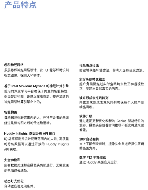 Huddly 來自挪威,結合北歐工業設計的硬件、軟件、以及人工智能,打造迷人且智能的視覺產品。Huddly 攝像頭擁有150°超廣角、4K、人工智能人像識別、大數據API、自動化控制等眾多革命性創新技術。