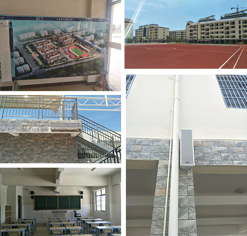 廣播揚聲器根據室內外不同區域功能合理配置和安裝,高保真音質,音頻傳輸距離無限制,還能同時實現多音源播放。滿足學校自動上下課打鈴、喊操、運動區擴聲、背景音樂播放、廣播通知、緊急消防聯動、多媒體教學等功能。