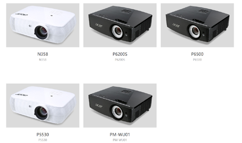 針對不同需求,在商務會議領域宏碁V26AX、V26AW、AS319、V36S等多款機型分別提供了3600-3800流明;VGA-WXGA分辨率不等的各規格機型。