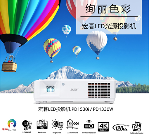 本次宏碁新品投影機PD1530i和PD1330W均采用LED新光源,在色彩上比激光光源更加絢麗,覆蓋125%