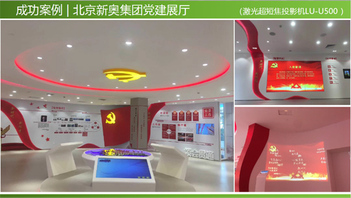 隨著黨建文化的熱潮,越來越多的企事業單位開始籌劃黨建展廳,加強企業內部文化建設。北京某集團黨建展廳項目采用宏碁激光超短焦投影機LU-U500,助力培養員工黨風黨建價值觀念。區別于傳統黨建展廳中靜態文字的展示風格,現代化黨建展廳以多媒體的增強技術,能夠營造更加強烈的視覺和互動效果,進而充分展現企業實力和黨建文化。即使面對黨建展廳內紅色的色彩基調和持久高亮的環境光,宏碁LU-U500依舊憑借5700的高流明度,保持輸出明亮清晰而鮮明的圖像。通過投影將黨建文化轉化為更加靈活、生動的展示內容,配合創新的展示形式,進一步擴大傳達效果。