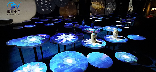 此次項目沉浸互動區引進的20臺LU-S200W激光短焦投影機采用懸掛的方式安裝在展區頂部,通過多臺融合的方式在墻面桌面打造夢幻光影的效果。LU-S200W擁有4300流明高亮度,無畏環境中的明亮光線,分辨率1280*800,最大支持以1080p顯示4K(3840*2160)HDR內容。距離墻面1米左右即可輕松實現單臺投射110英寸寬幅畫面,標準畫面比例為16:10,也同步支持4:3和16:9,兼容不同畫面的各種比例,并進行明亮高清的輸出展示。