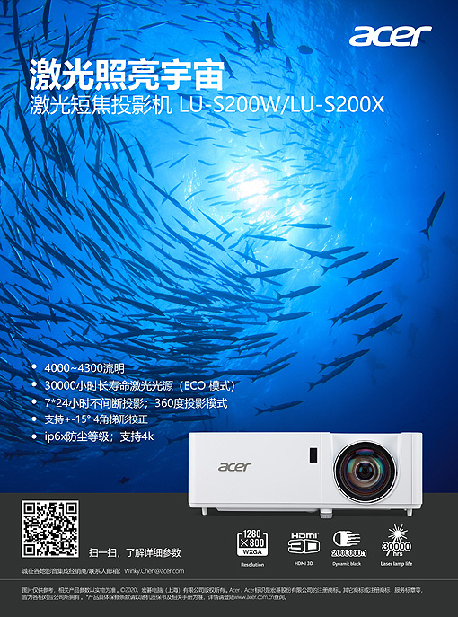 近年來Acer宏碁在投影領域不斷探索,憑借優質的產品、完善的服務體系、專業全面的解決方案成功入駐中央國家機關政府采購中心的電子賣場,LU-S200系列激光投影機攜Acer宏碁的專業配置和人性化功能成為不同展館展廳熱選設備。Acer宏碁將持續提供多元解決方案,深入不同行業領域,提供更靈活的投影解決方案。 |