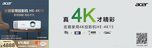 無論高清電影、電競游戲,還是賽場競技,宏碁(Acer)4K家用投影機HE-4K15,都能滿足各式達人居家影音娛樂的需求!值此618來領之際,HE-4K15在宏碁投影京東自營旗艦店618寵粉福利火熱預售中,趕緊上車直達鏈接 |